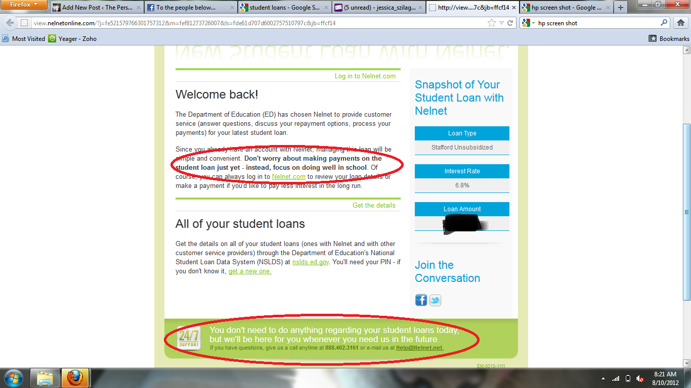 Then, just this week, I received a “Welcome Back!” email from my loan host as well. Please see the ‘circled’ sections below: